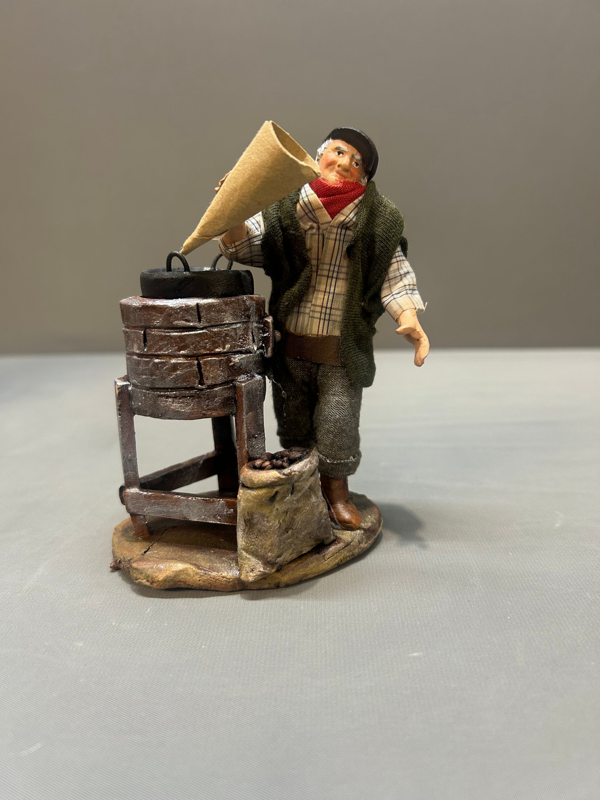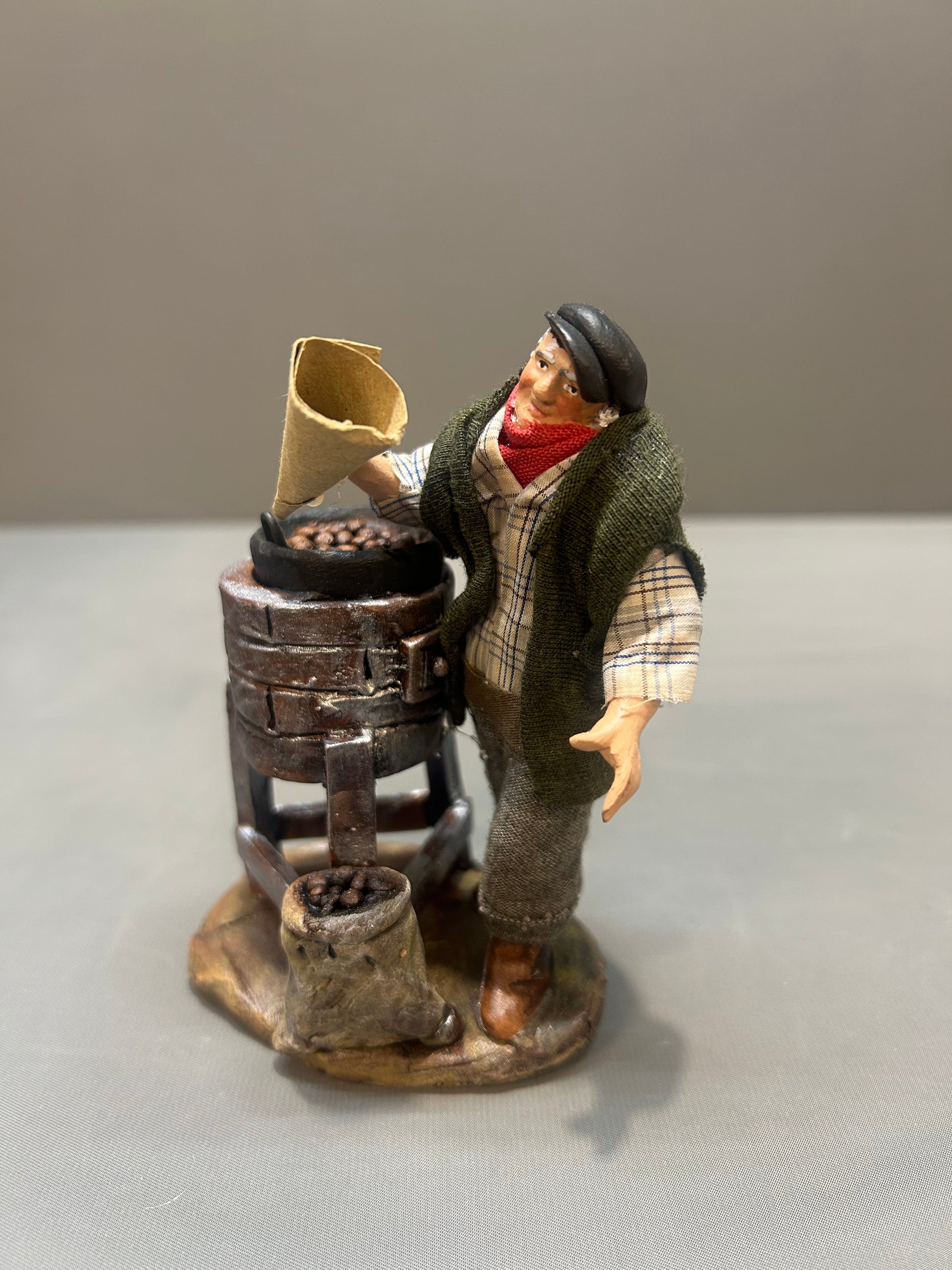 Castagnaro statuina in stile 700 Napoletano, realizzata interamente a mano e vestita con stoffe.